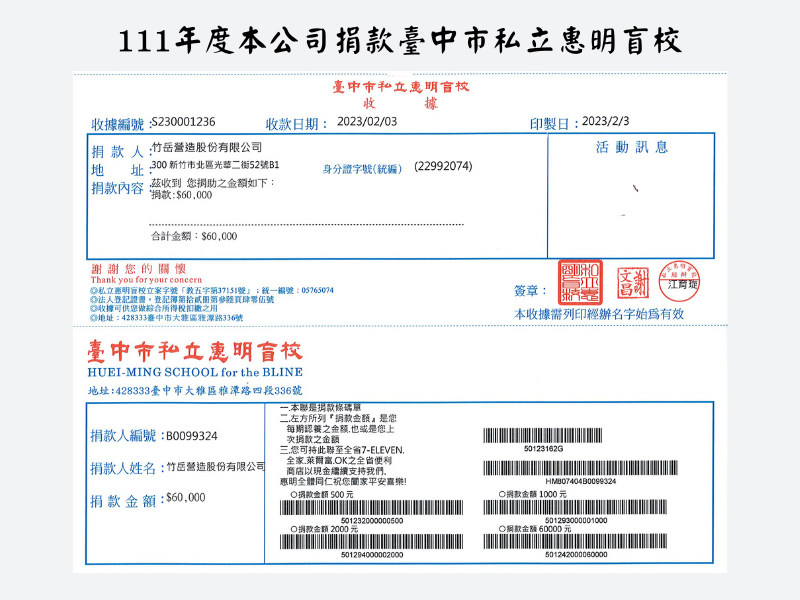捐款-台中私立惠明盲校